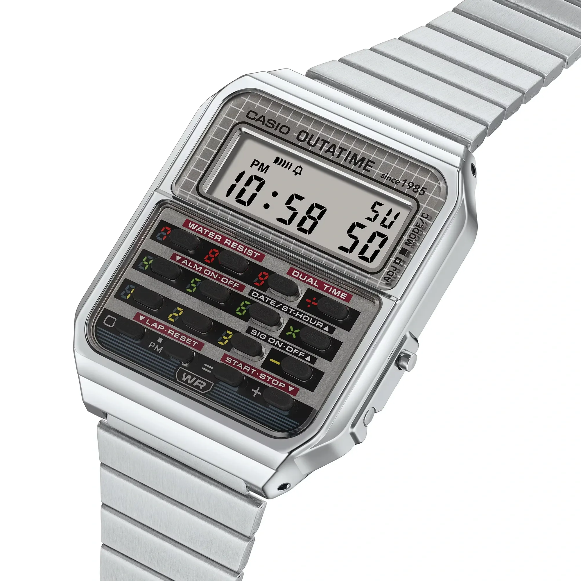 Created in collaboration with Universal Products & Experiences (UP&E), the CA-500WEBF bridges two icons: Casio’s legendary calculator watch and the time-traveling DeLorean from the 1985 sci-fi classic. For fans of both film and design, it’s a wearable tribute that captures that quirky, futuristic optimism of the ‘80s — back when digital watches felt like mini computers on your wrist.