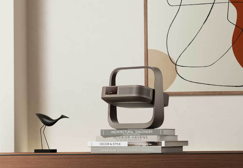At just 7.8 cm thick and 1.5 kg light, the Z9X looks more like a minimalist art object than a projector. It comes in an elegant Mocha Brown finish and features a gimbal-style hinge that tilts up to 150 degrees, making it easy to project onto a wall, ceiling, or wherever your movie night happens.